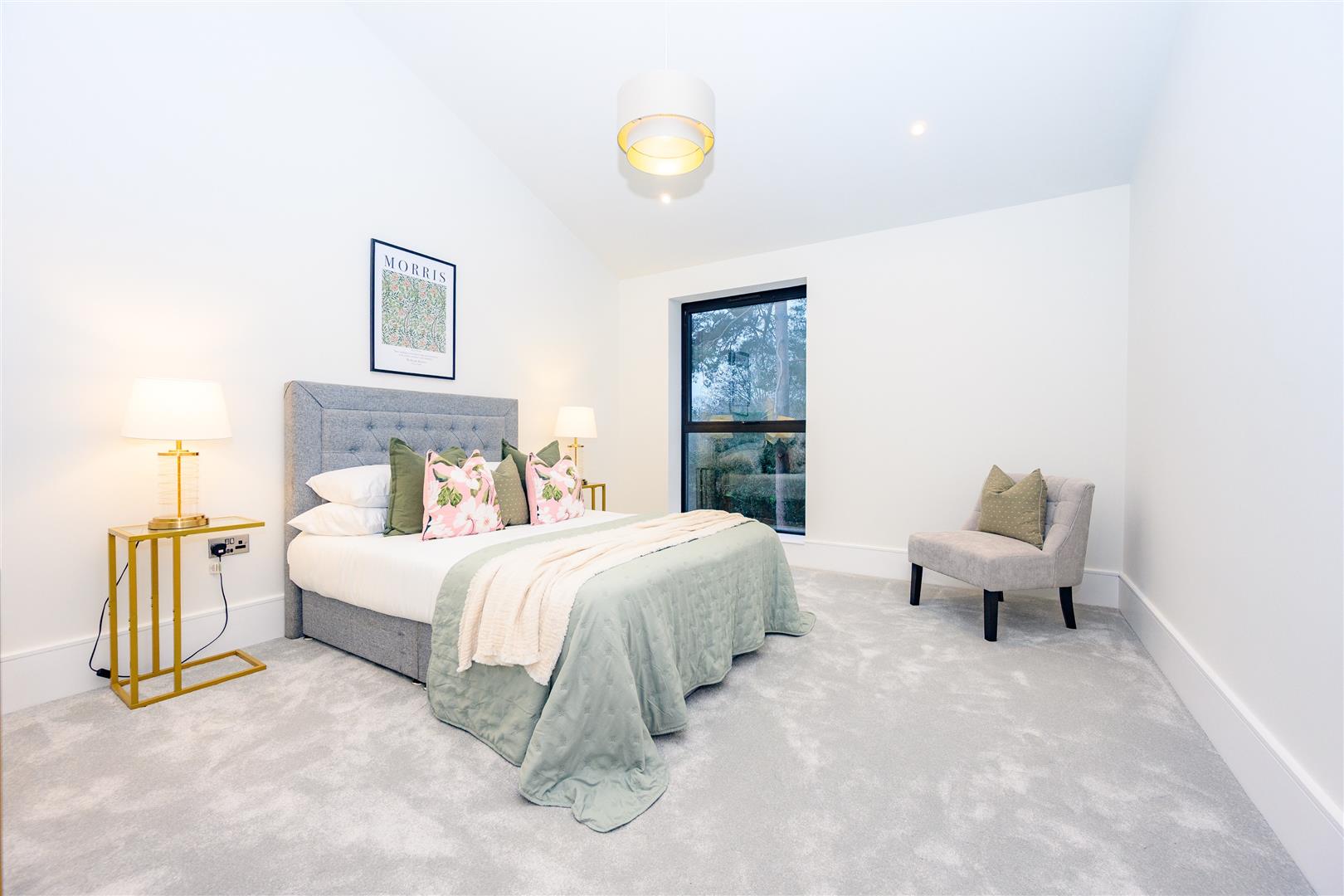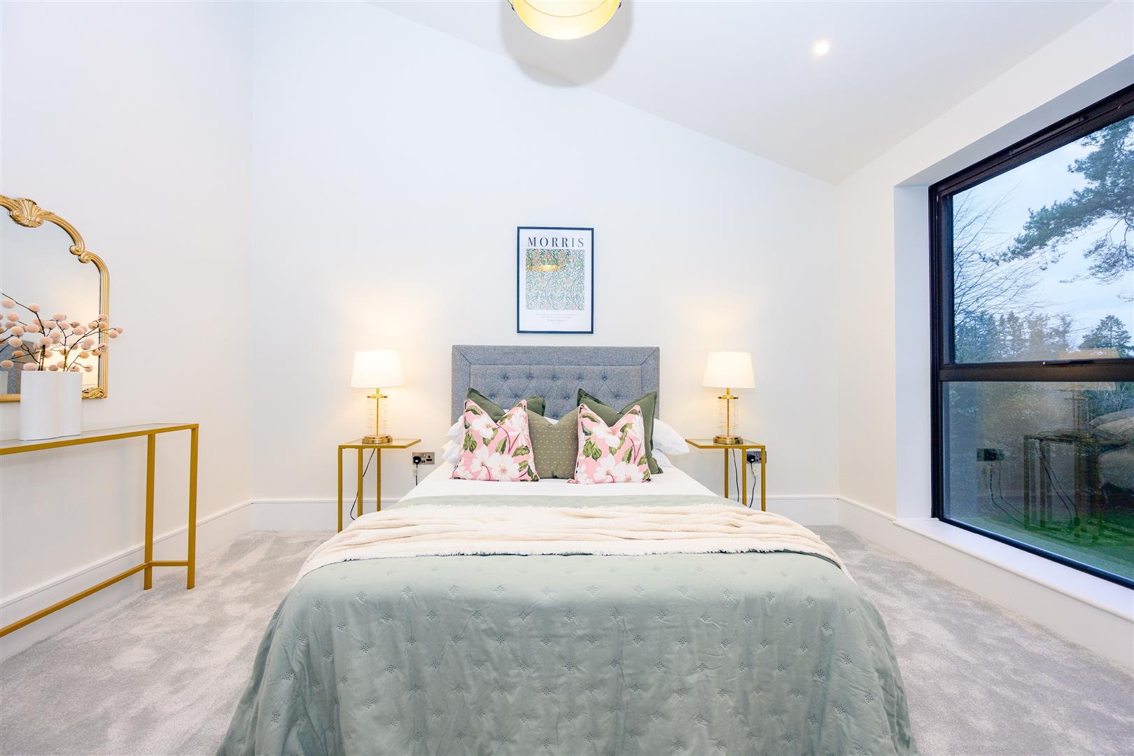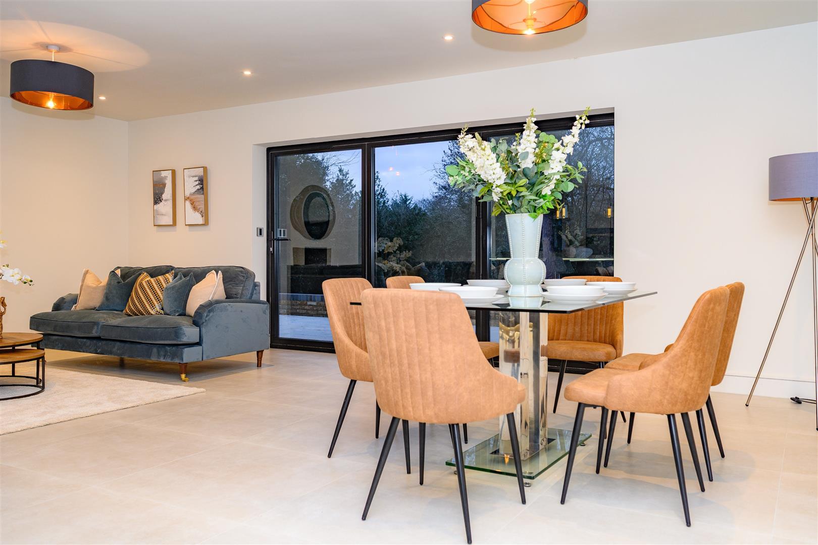 The living room is not just spacious, but also designed for comfort, with sliding glazed doors opening the room to the gardens, creating a seamless connection to the outside space. This room offers a comfortable area to relax, ensuring that you can unwind after a long day.