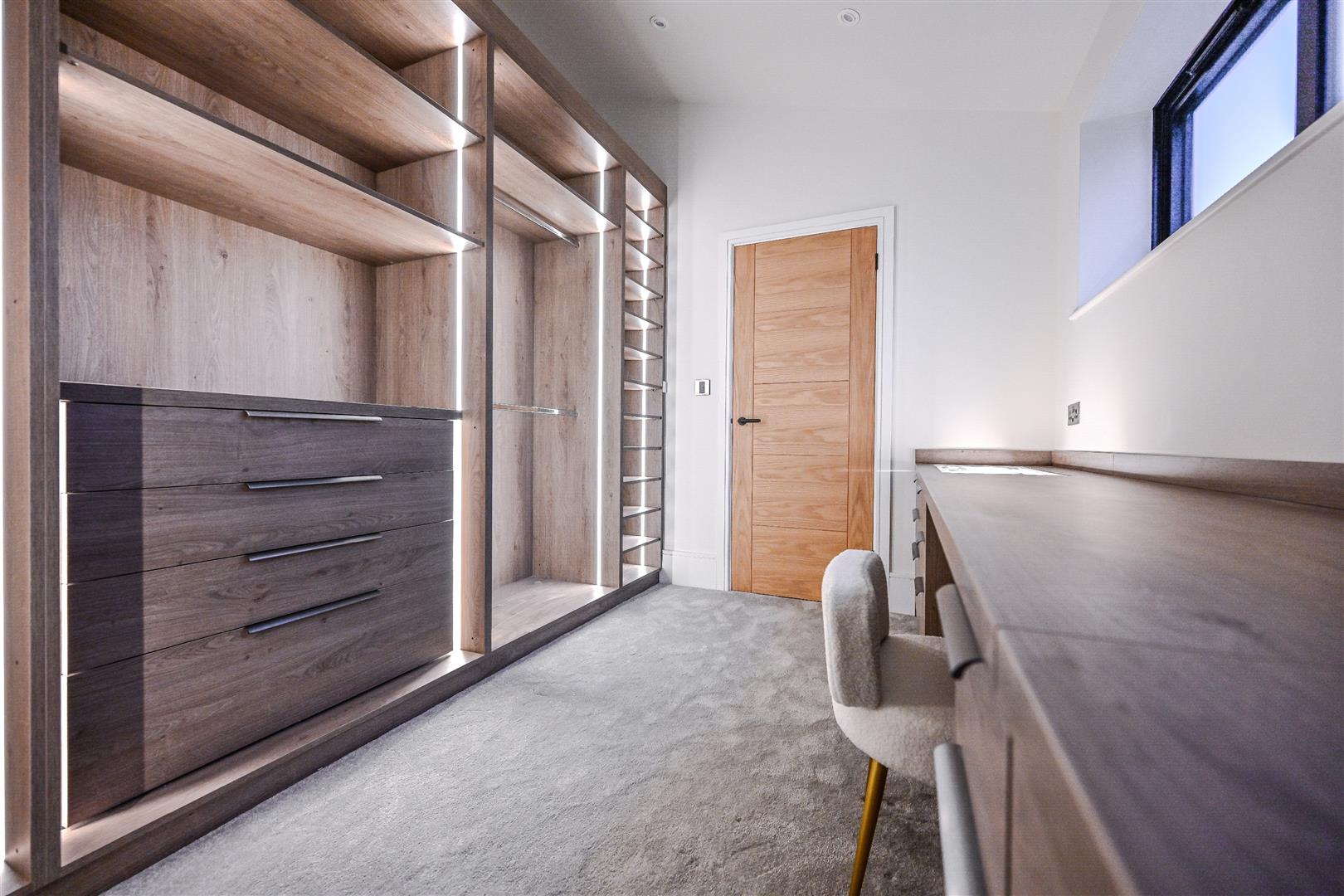 The walk-in wardrobe will be the envy of any fashionista, with built-in storage and a window out to the side of the property.
